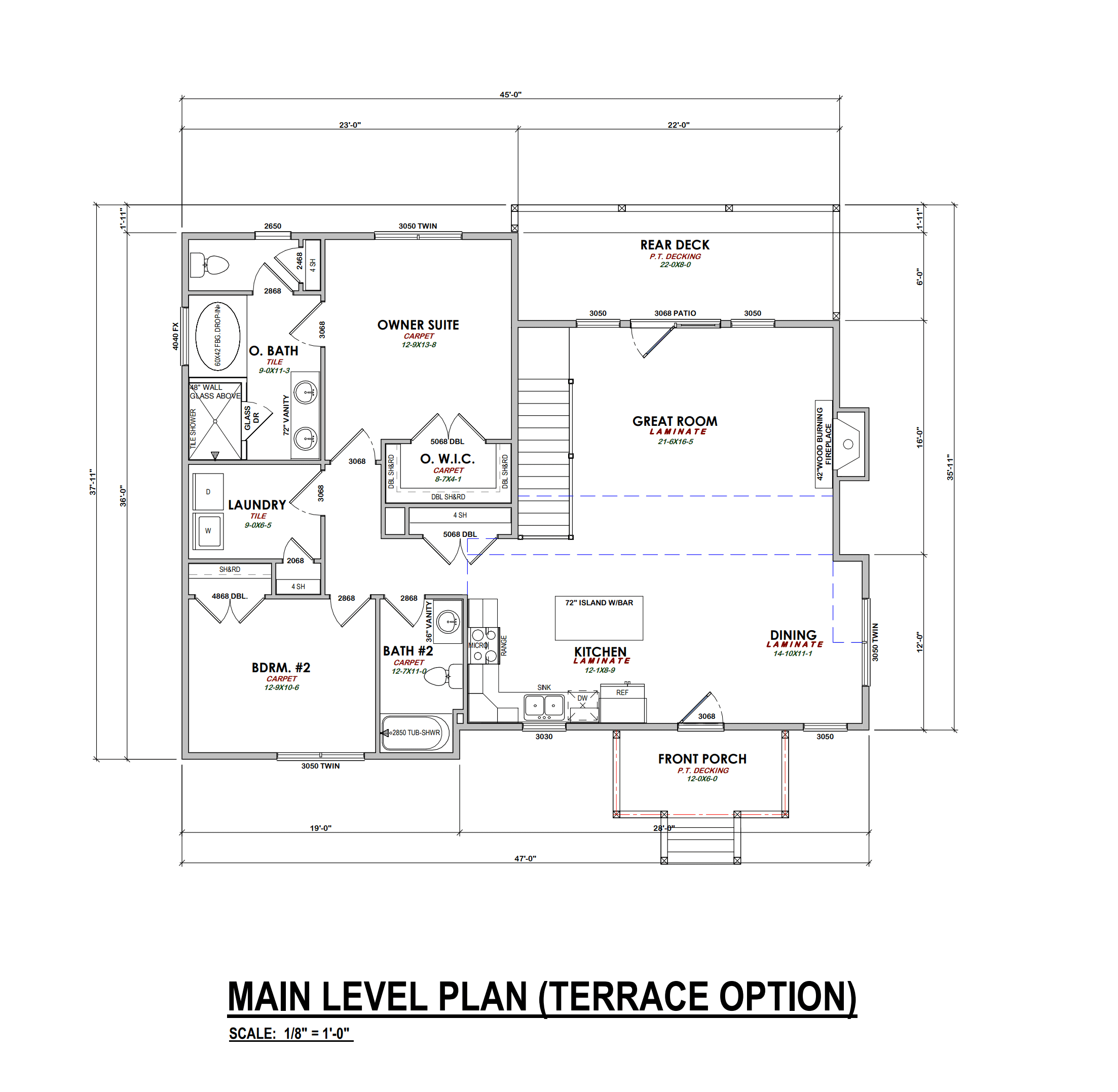 The RidgeView is one of Brown Haven’s most popular portfolio plans! Mountain/Lake getaway or your forever home, this plan caters to all. This floor plan offers vaulted ceilings throughout the main living area with a huge open design for maximum comfort. This open floor plan is ideal for entertainment or just for sitting back and taking in all the gorgeous views our mountains and lakes have to offer. Take a look at our photo galleries and floor plan above to see all the RidgeView’s wonderful features. *Optional terrace level available.