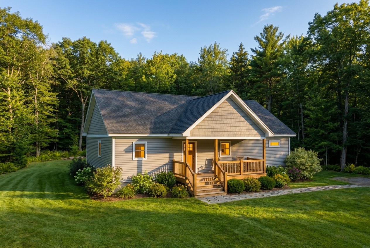Classic cottage charm meets modern versatility in this efficient and inviting Brown Haven Home. Perfectly sized for a weekend getaway or a low-maintenance primary residence, this 2-bedroom, 2-bathroom design maximizes every square foot. A welcoming front porch with timber accents invites you into a bright, open-concept core where the Kitchen—anchored by a large center island—flows seamlessly into the Great Room. With direct access to an expansive rear deck, the living space naturally extends outdoors, creating the ideal setting for morning coffee or evening entertaining.
